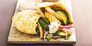 Mehl, Zucker, Vanillezucker und Salz in eine Schüssel geben und gut mischen. Eier und die Milch zugeben und zu einem glatten, klumpenfreien Teig verrühren. Den Teig gut quellen lassen, erst dann Zitronensaft und Bittermandelaroma zugeben. Etwas Öl in einer Pfanne erhitzen und aus dem Pfannkuchenteig nacheinander 4 Pfannkuchen ausbacken. Inzwischen die Sahne schlagen und mit Vanillezucker süßen. Die Früchte waschen, putzen und gut abtropfen lassen (Tiefkühlware etwas antauen lassen) und unter die Sahne heben. Die Pfannkuchen mit der Fruchtsahne füllen, zusammenklappen, auf Tellern anrichten und mit Pistazien bestreut servieren.