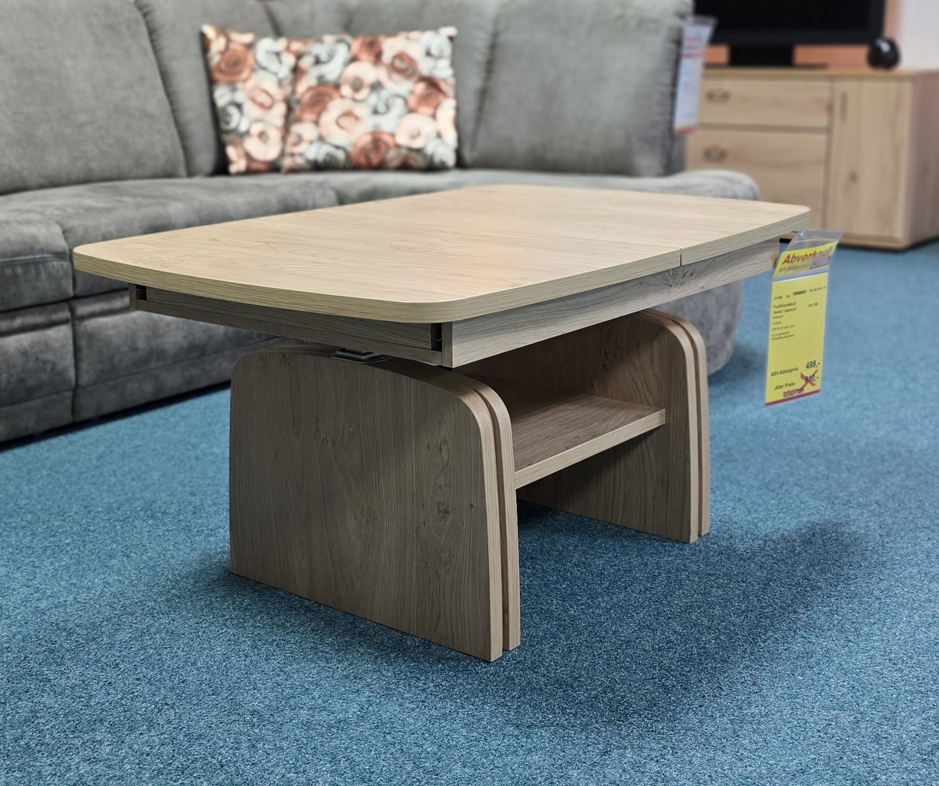 in Wildeiche Nachbildung, Höhenverstellbar, Tischplatte ausziehbar.