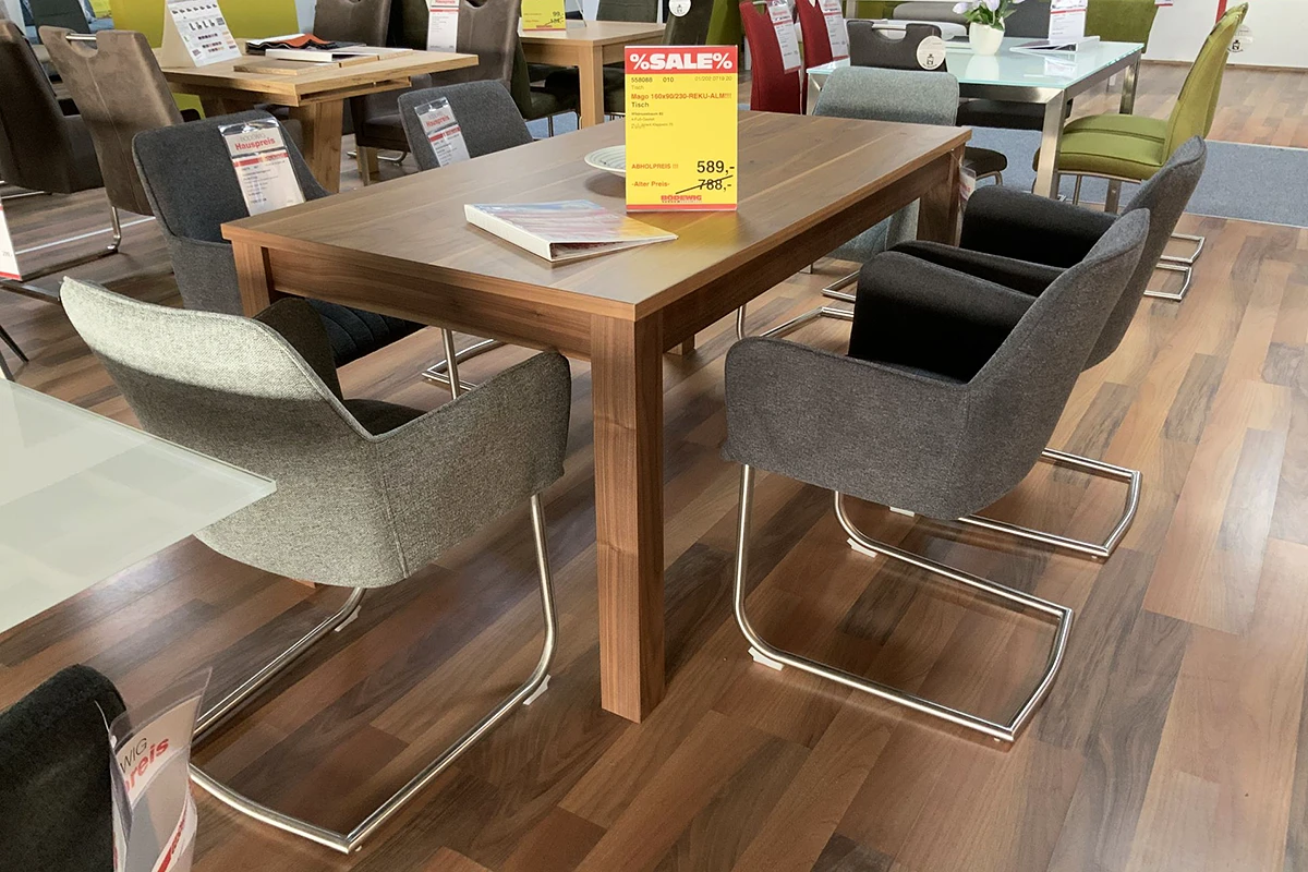 B/H/T ca. 160 cm (ausziehbar auf 230 cm) x 77 cm x 90 cm