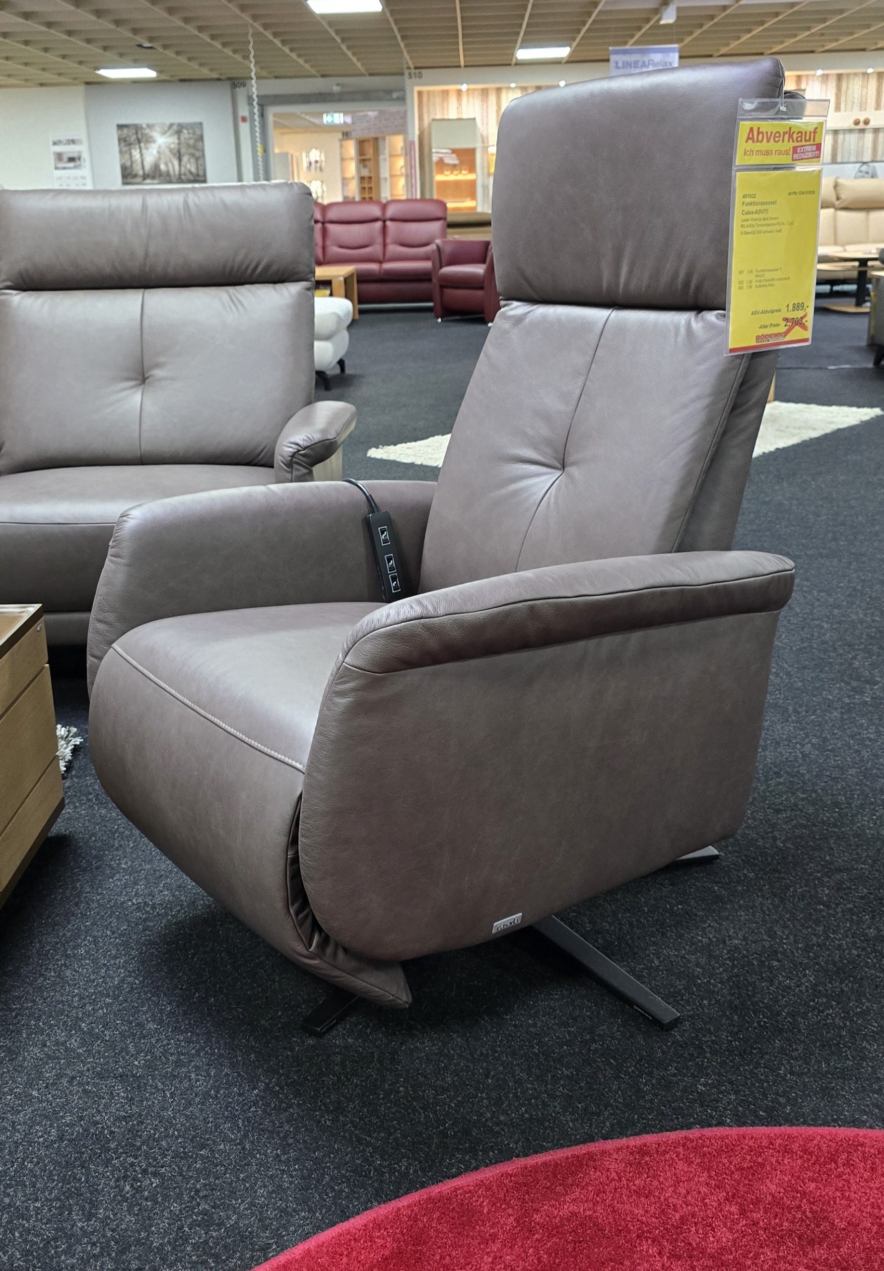 Leder Vicenza dark brown, Sitz Tonnentaschenfederkern, 5-Sternfuß 909 schwarz matt, Relaxfkt. motorisch mit Akku
