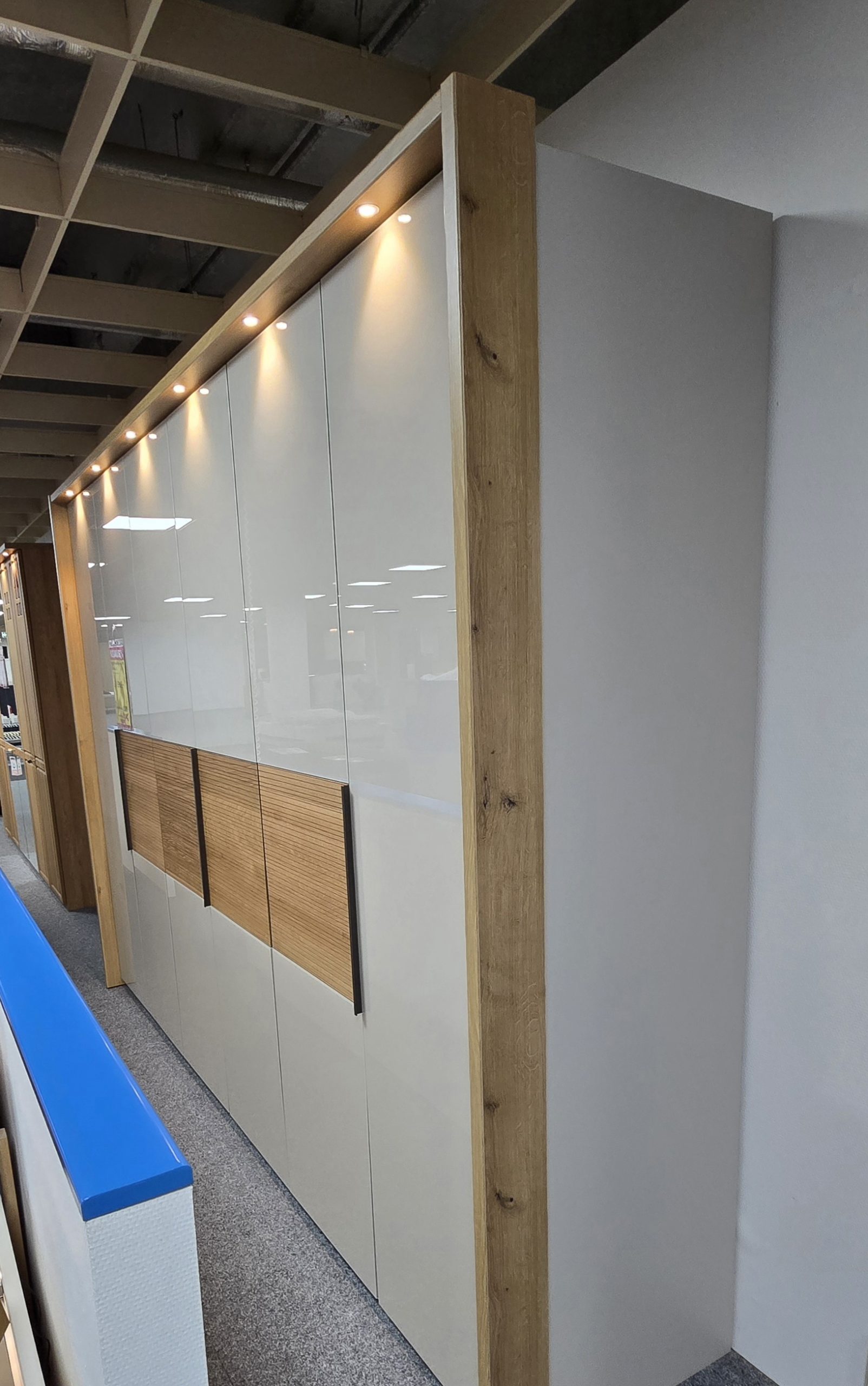 6türig, B 300 x H 220 T 65cm. Inklusive Passepartout mit LED-Beleuchtung und Wäschebodeneinsatz.