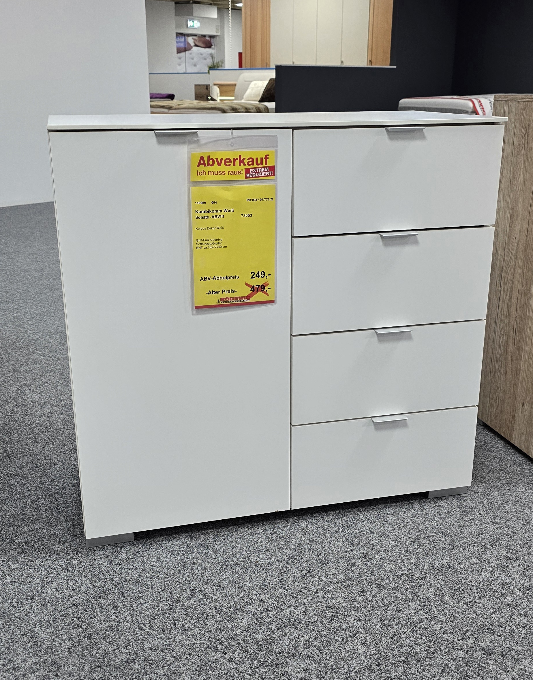 Korpus + Front Dekor Weiß, Griff Alufarbig, Softeinzug