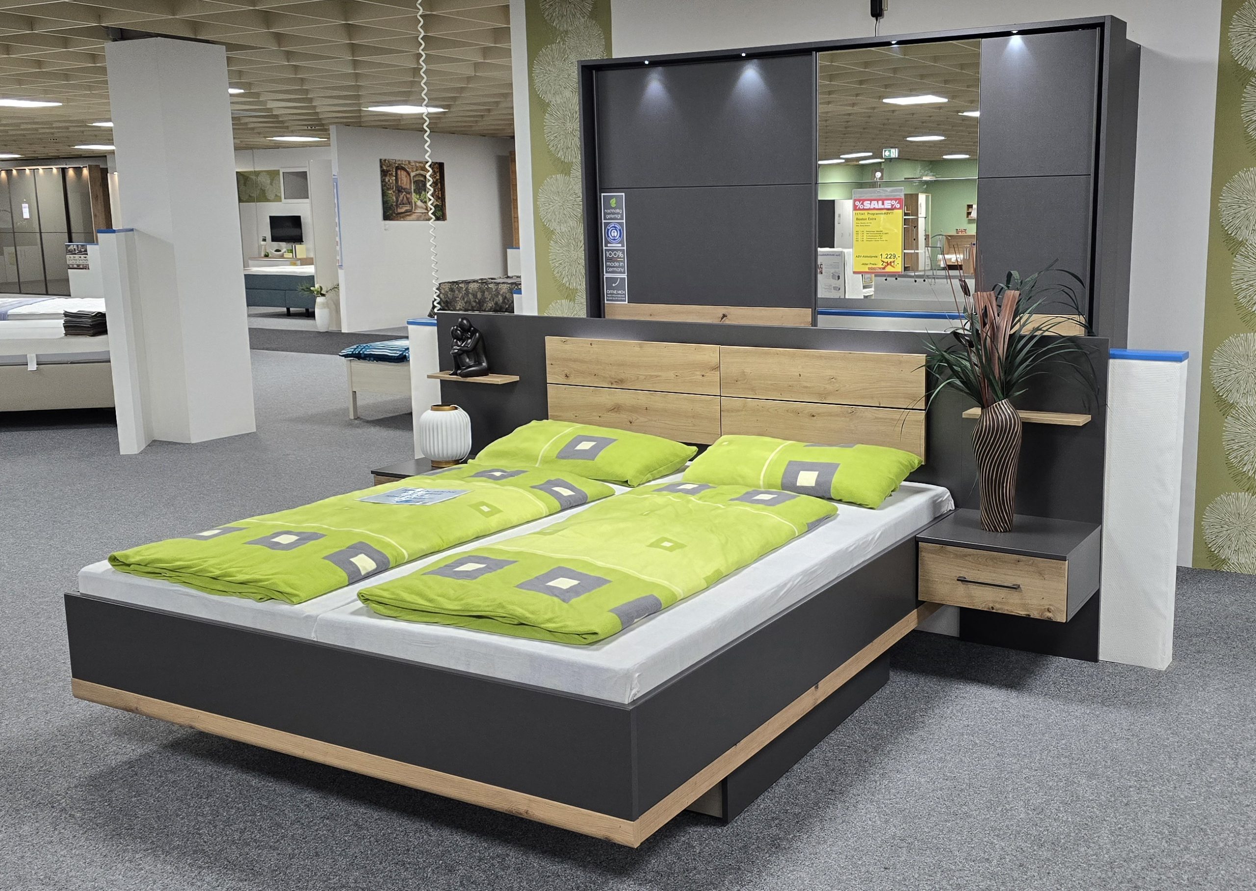 Schlafzimmer Boston in grau metallic Dekor mit Absetzung Eiche Artisan.