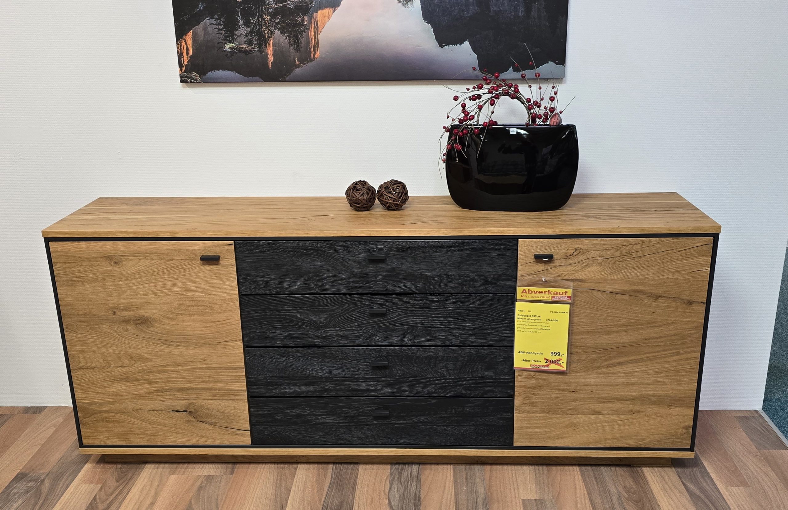 Salzkammergut Alteichennatur furniert/Akzent Spalteiche Carbongrau gebürstet mehrschichtig lackiert, Metall Griff,