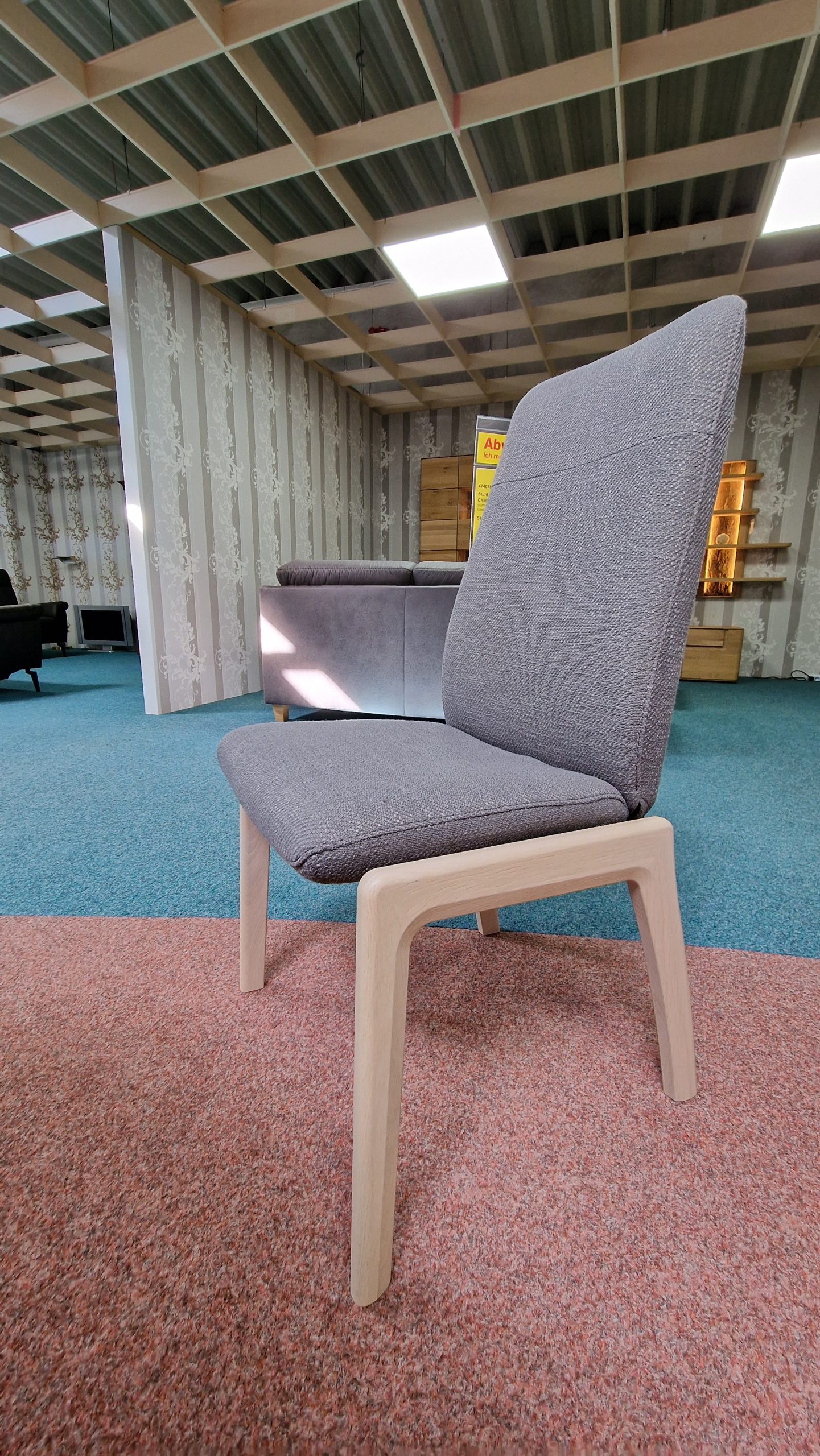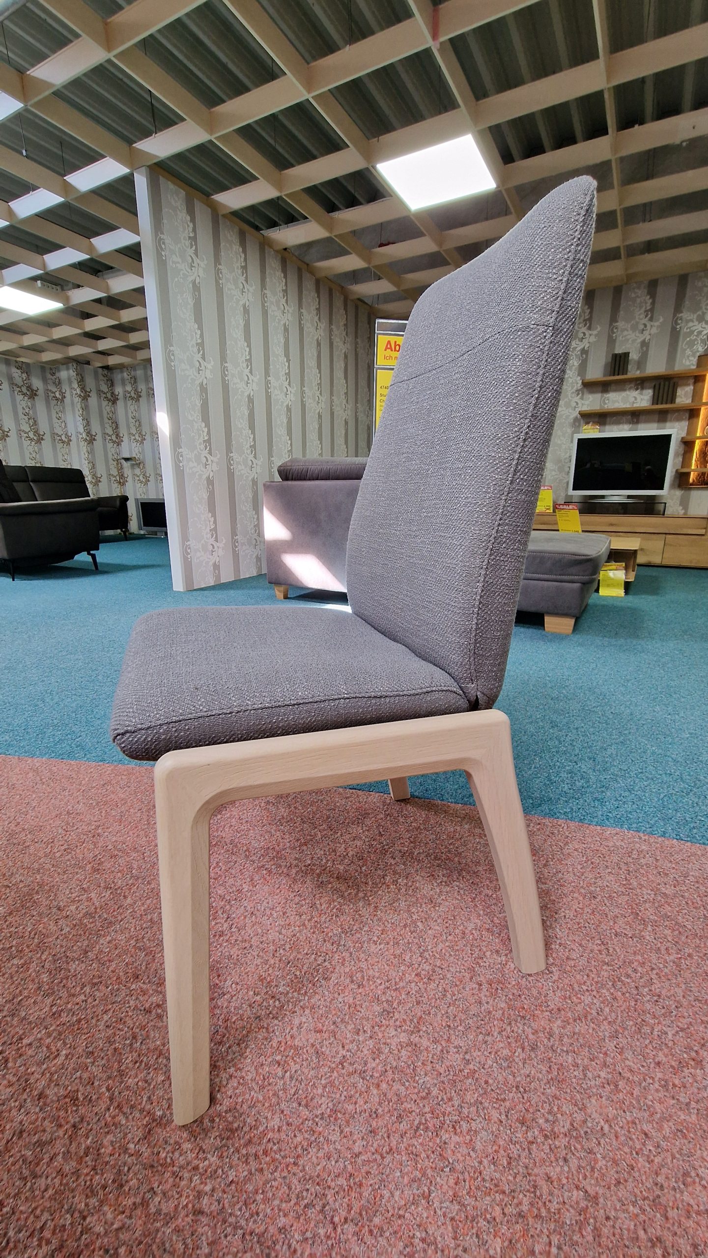 Stoff Freesia Grey, Gestell Whitewash, hohe Rückenlehne