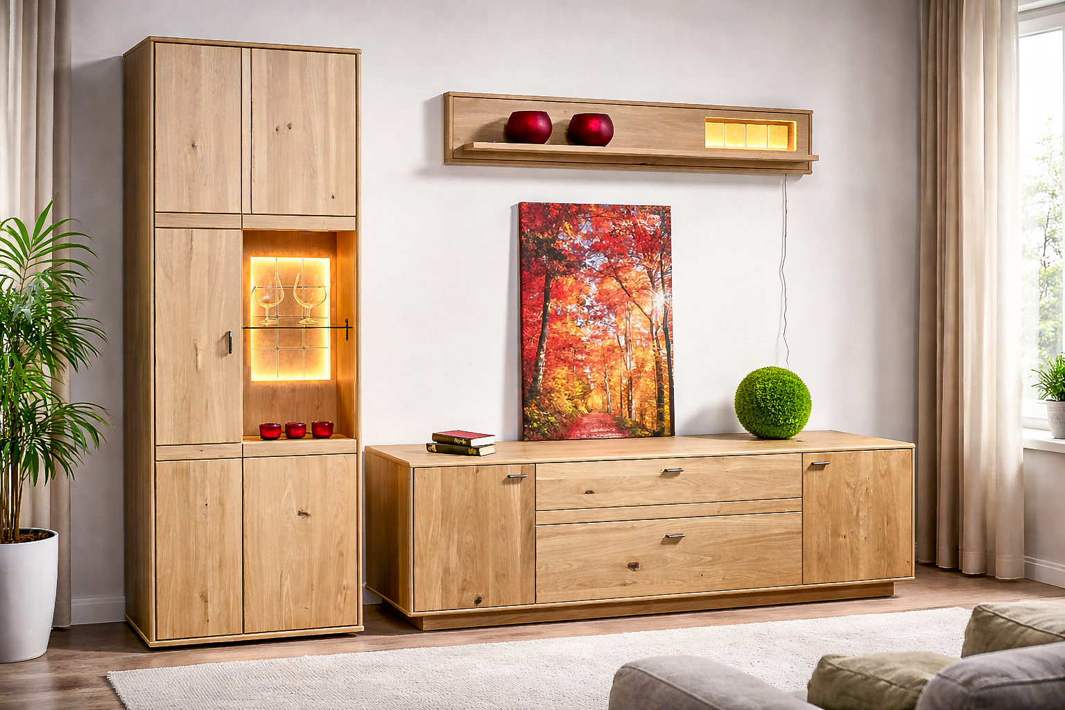 in Ast/Balkeneiche/Kristalleiche geölt inkl. Beleuchtung und Funkfernbedienung.