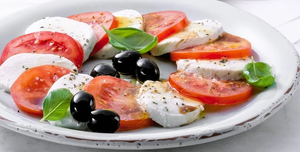 Die Tomaten waschen, Stielansatz entfernen und in ca. 0,5 cm dicke Scheiben schneiden. Mozzarella gut abtropfen lassen und ebenfalls in Scheiben schneiden. Beides abwechselnd auf 4 Tellern anrichten. Mit Salz und Pfeffer würzen. Mit Olivenöl und Balsamico-Essig beträufeln, mit Oliven, klein geschnittenem Basilikum und einigen Basilikumblättchen garnieren. Probieren Sie zur Caprese statt Wein oder Wasser […]