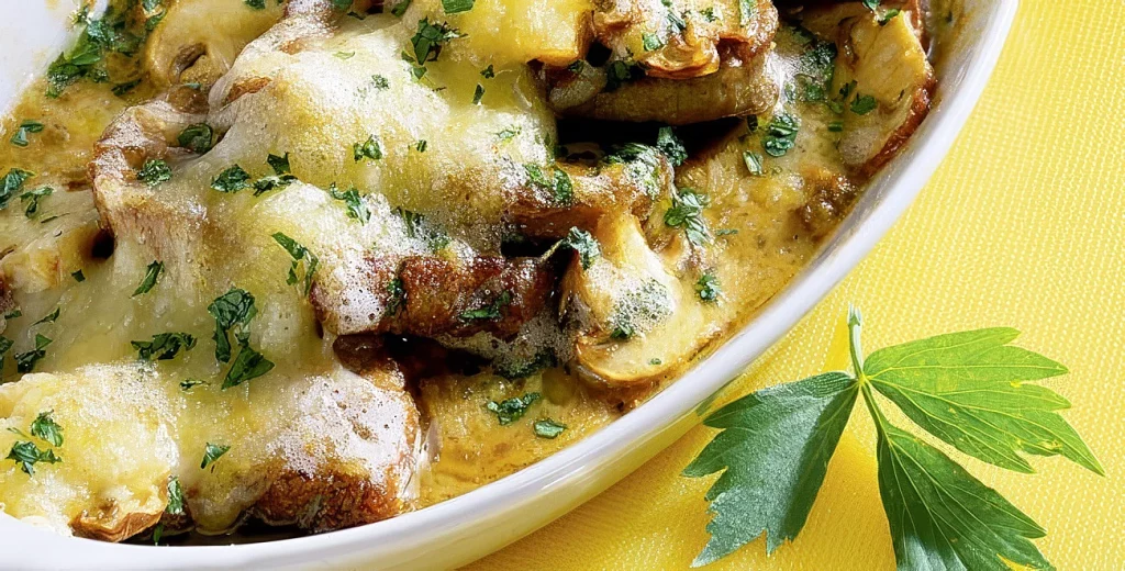 Das Filet quer in etwa 0,5 cm dicke Scheiben schneiden, salzen und pfeffern. Das Sonnenblumenöl in einer Pfanne erhitzen, die Filetscheiben darin von jeder Seite ca. 1-2 Min. braten, herausnehmen. Die Zwiebel schälen und fein hacken. Die Champignons putzen und in Scheiben schneiden. Die Zwiebeln in der Pfanne glasig anschwitzen, die Steinchampignons zufügen und kurz […]