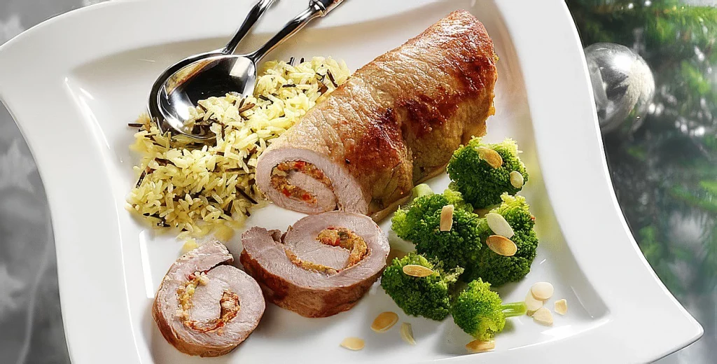 Gefüllte Kalbsroulade mit gemandeltem Brokkoli