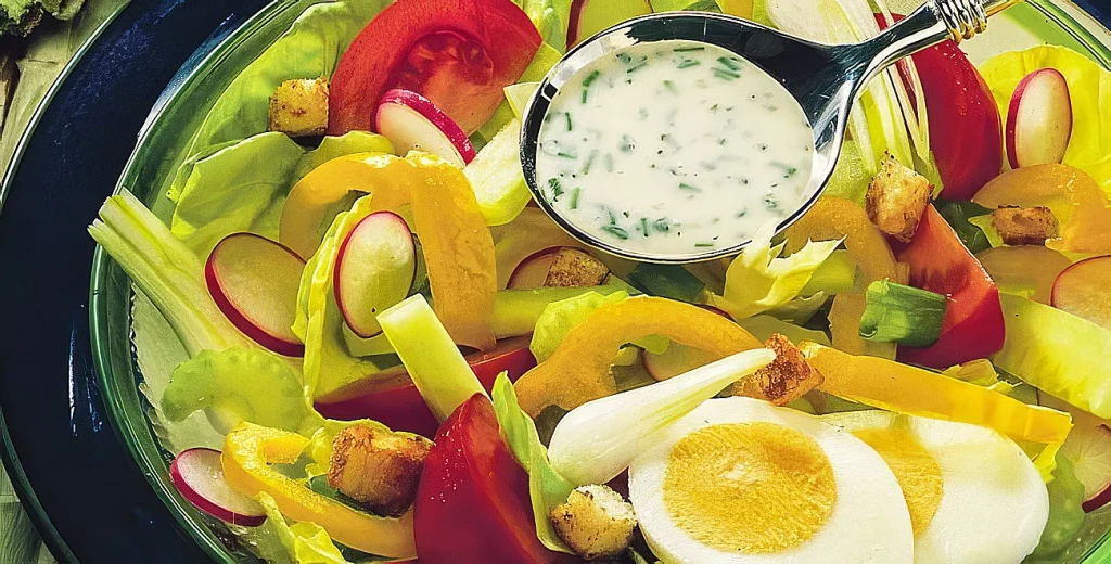 Gemüse waschen und putzen. Paprika in Streifen, Bleichsellerie und Fenchel in Stücke, Radieschen in Scheiben und Tomaten in Achtel schneiden und in vier Salatschüsseln anrichten. Das Brot toasten, in Würfel schneiden und über den Salat geben. Mit Eischeiben garnieren. Aus Joghurt und Zitronensaft ein Dressing zubereiten, mit Kräutern und Gewürzen abschmecken und über den Salat […]