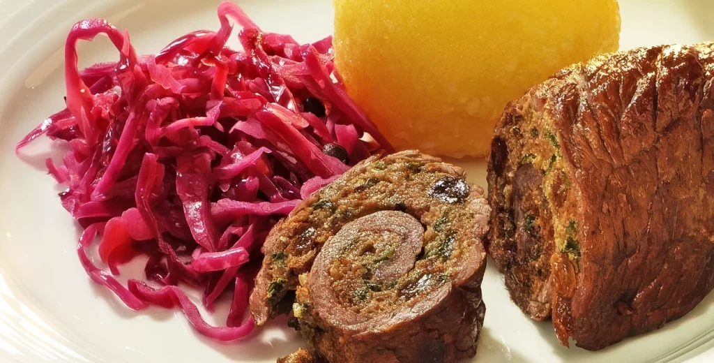 Festtagsrouladen mit Rotkohl und Kartoffelklößen