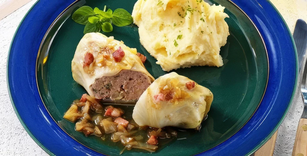 Vom Kohlkopf die äußeren Blätter entfernen, anschließend 8 schöne große Blätter vom Strunk lösen und diese in kochendem Wasser 4-5 Minuten blanchieren. Sofern sich die Blätter nicht vom Kopf lösen (dies ist oft bei jungem Kohl der Fall), den ganzen Kohlkopf 5-10 Minuten in kochendes Salzwasser geben, herausnehmen und dann die Blätter vom Strunk lösen. […]