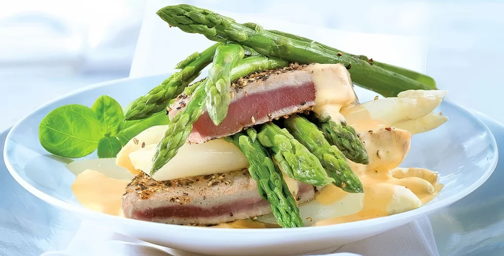 Den Spargel in kleine Stücke schneiden und in einem Topf in 1 EL Butter anschwitzen. 800 ml Wasser zugeben und den Spargel weich kochen. Die Kräuter zugeben, das Ganze mit einem Mixstab glatt pürieren und durch ein feines Sieb passieren. Die Spargel-Kräuter-Suppe zusammen mit der Sahne zurück in den Topf geben und einmal aufkochen. Mit […]