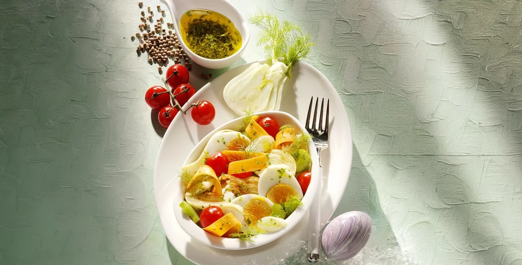 Fenchel-Salat mit Ei und Tomate