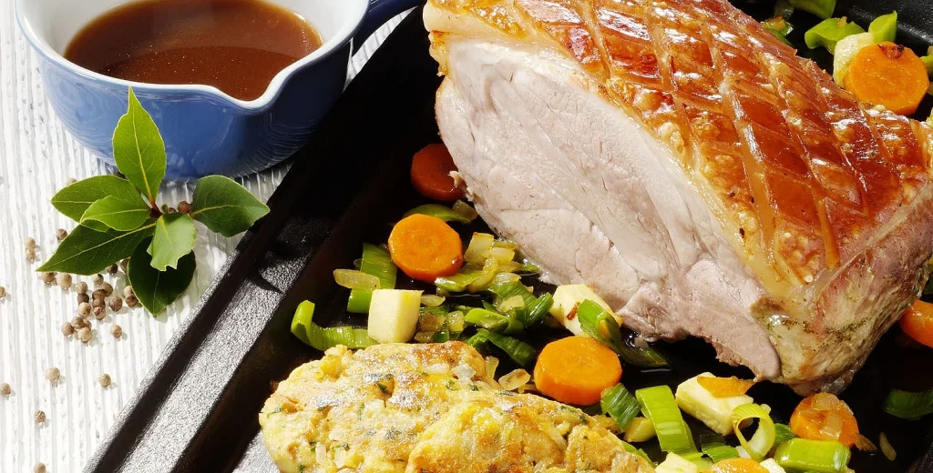 Schweinsbraten mit gebratenen Semmelknödeln