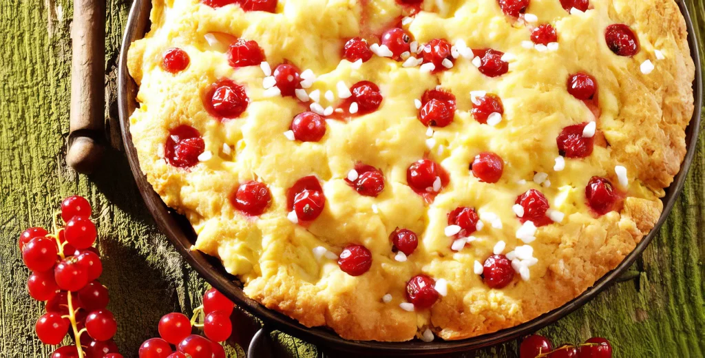 Die Eier trennen. Die Äpfel schälen, das Kerngehäuse entfernen und in kleine Würfel schneiden. Die Johannisbeeren waschen, putzen und gut abtropfen lassen. Butter mit Zucker, Salz, Zitronenschale und den Eigelben schaumig rühren. Backpulver mit Mehl und Weizenstärke mischen und gut unterrühren. Das Eiweiß steif schlagen und unter die Masse ziehen. Anschließend die Apfelstücke unterheben und […]